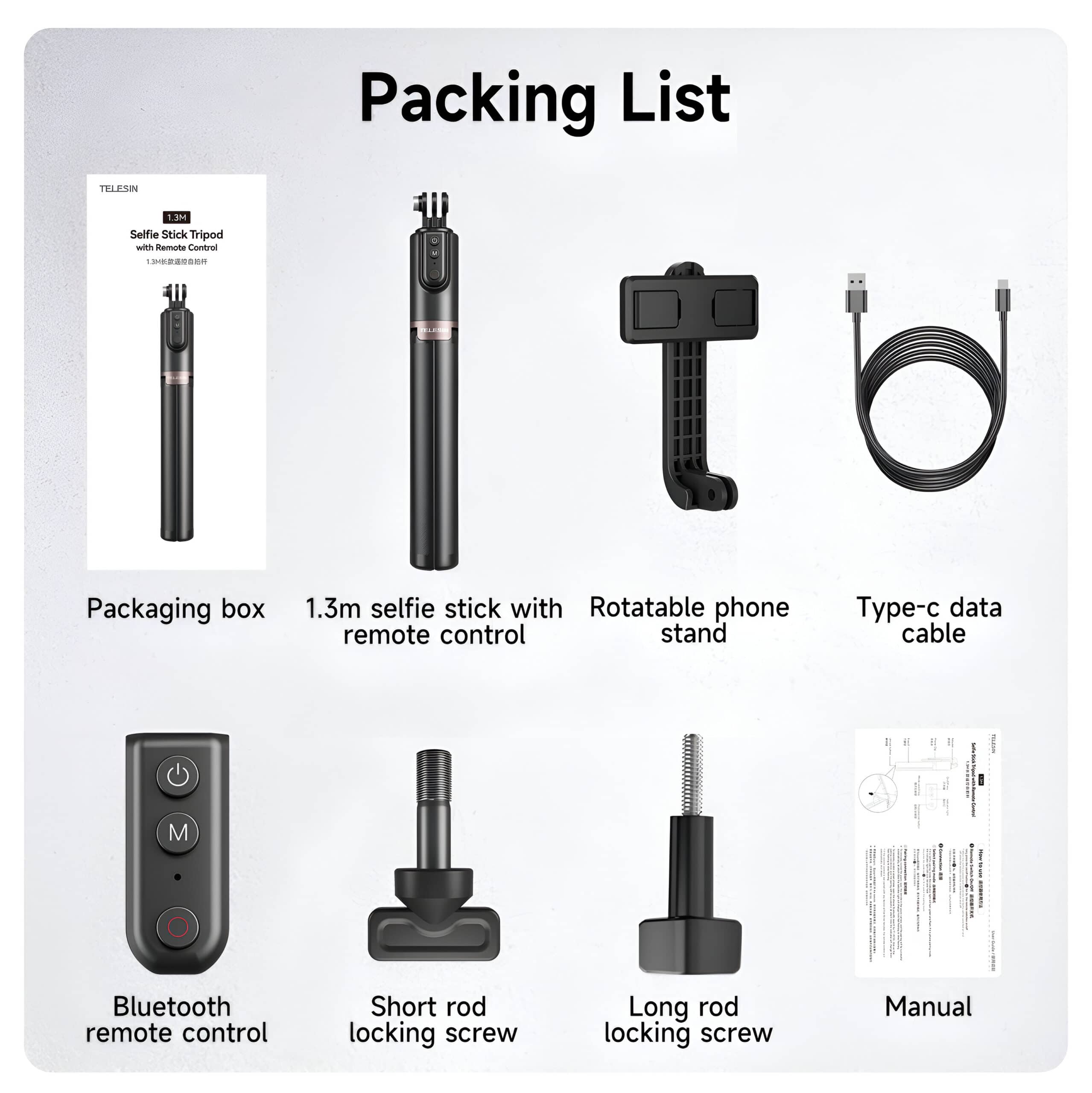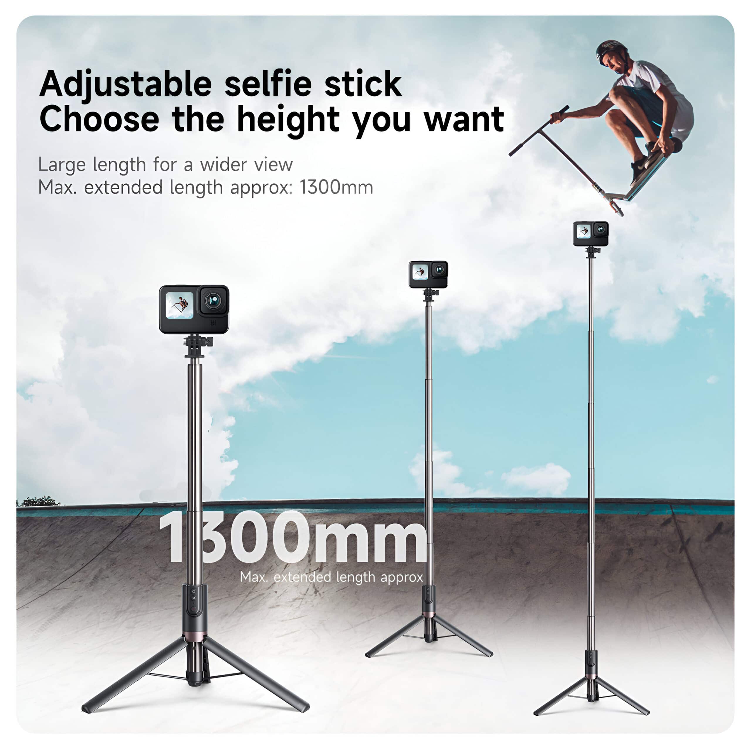 Take your photography game to the next level with the 1.3M Extendable Selfie Stick Tripod. Whether you’re capturing breathtaking landscapes, dynamic action shots, or cherished family moments, this versatile tool adapts seamlessly to your needs. Designed for use with smartphones, action cameras like GoPro, Insta360, and DJI, this selfie stick tripod ensures you never miss a picture-perfect moment. Its lightweight, durable design makes it your ideal travel companion for adventures big and small.