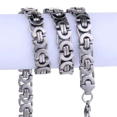 What sets this necklace apart is its combination of elegance, durability, and versatility. The trendy Byzantine link pattern is not just visually appealing but also symbolizes strength and connection, making it more than just a fashion statement. The stainless steel construction ensures it withstands the test of time, retaining its luster and strength. Available in multiple lengths, it caters to all preferences and body types, ensuring a perfect fit for everyone.