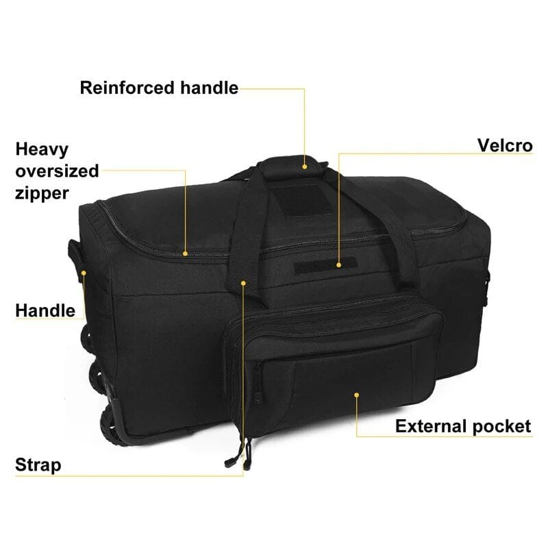 Meet your ultimate travel companion – the 124L Tactical Duffel Bag, meticulously designed for the rugged outdoors and the demands of heavy-duty use. Whether you’re embarking on a camping expedition, a hiking adventure, or a demanding military deployment, this rolling luggage is your reliable partner. Its generous 124-liter capacity, combined with a sturdy 600 High Density Polyester construction, ensures that this bag can handle the rigors of any journey while keeping your belongings secure and easily accessible.
