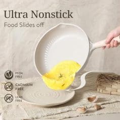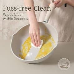 Experience the ease of cooking with our outstanding nonstick surface. Whether you’re flipping pancakes or searing meat, food slides right off, making cooking enjoyable and hassle-free. Cleaning up is just as easy. Forget about scrubbing pots and pans for hours. Our cookware’s ultra-nonstick coating allows for quick and easy cleaning, giving you more time to relax and enjoy your culinary creations.