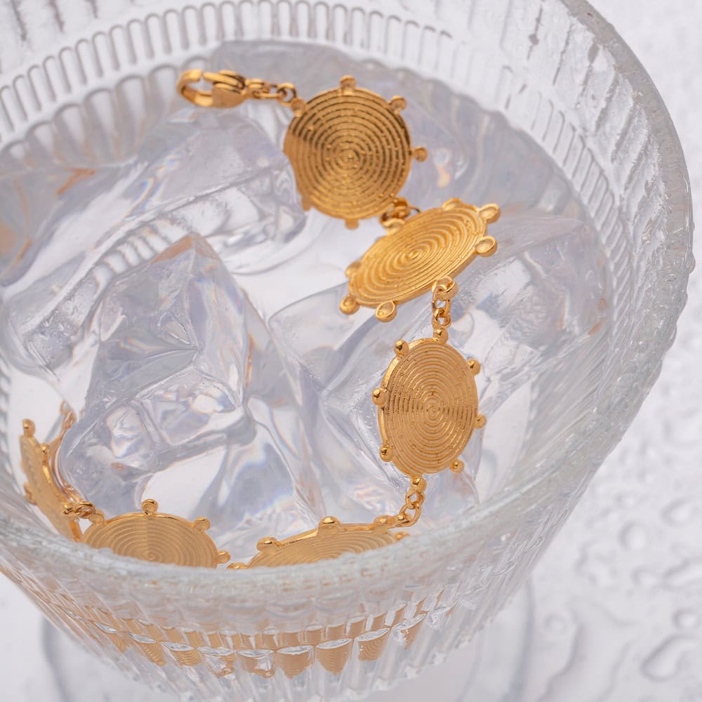 Our bracelet stands out with its vintage charm and modern durability. The retro palace-style design merges beautifully with the robust stainless steel construction. Enhanced with an 18K gold plating, it offers not just a stunning look but also a promise of durability. Waterproof and resistant to scratches, it maintains its allure in any setting, ensuring that the luxurious finish will not fade even after years of wear.