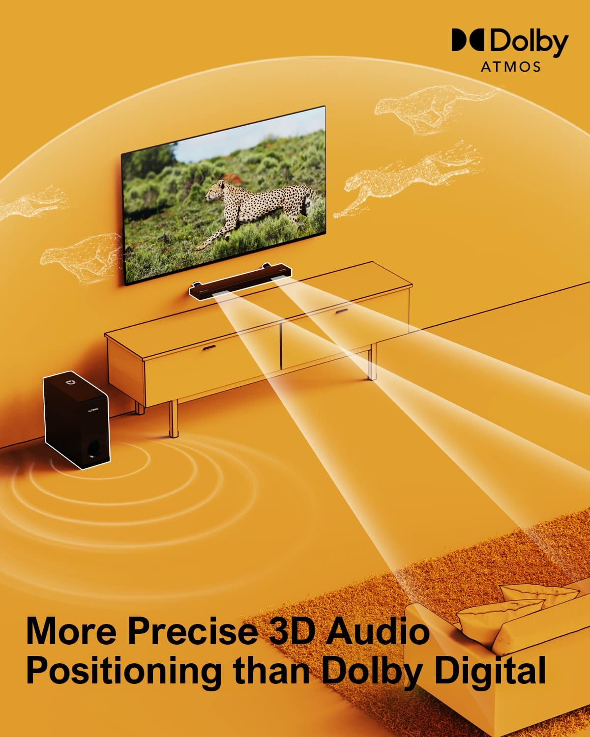 - Dolby Atmos Technology: Create a rich, immersive soundstage that enhances every movie, game, and song.