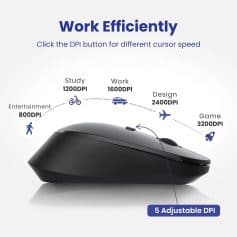 This wireless mouse is perfect for a range of activities. Whether you’re working on an important project, designing graphics, browsing the web, or enjoying your favorite games, its adjustable DPI and ergonomic design ensure a seamless and comfortable experience. Its quiet clicks make it ideal for use in shared environments like offices and libraries.