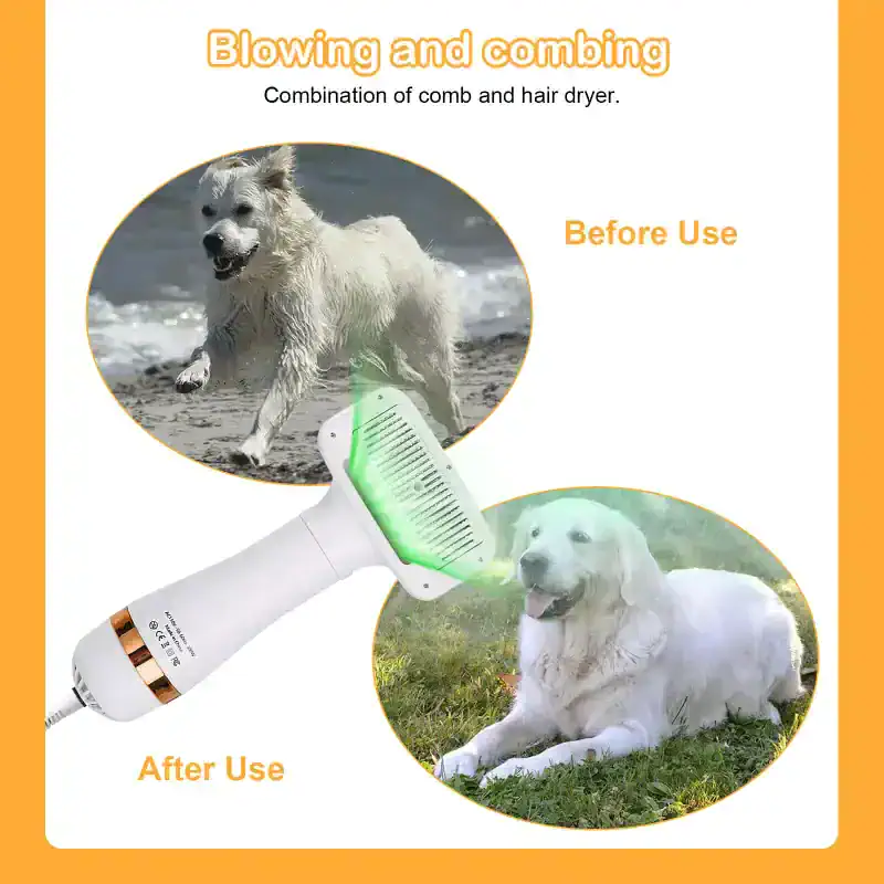 Ideal for use after baths or outdoor playtime, this pet dryer and comb brush is perfect for keeping your pet clean, dry, and groomed. Whether your pet has a short or long coat, the adjustable heat settings and quiet operation make it a versatile tool suitable for everyday grooming sessions or occasional use when needed. Use it to prevent mats, remove loose fur, and give your pet a polished, clean look with ease.