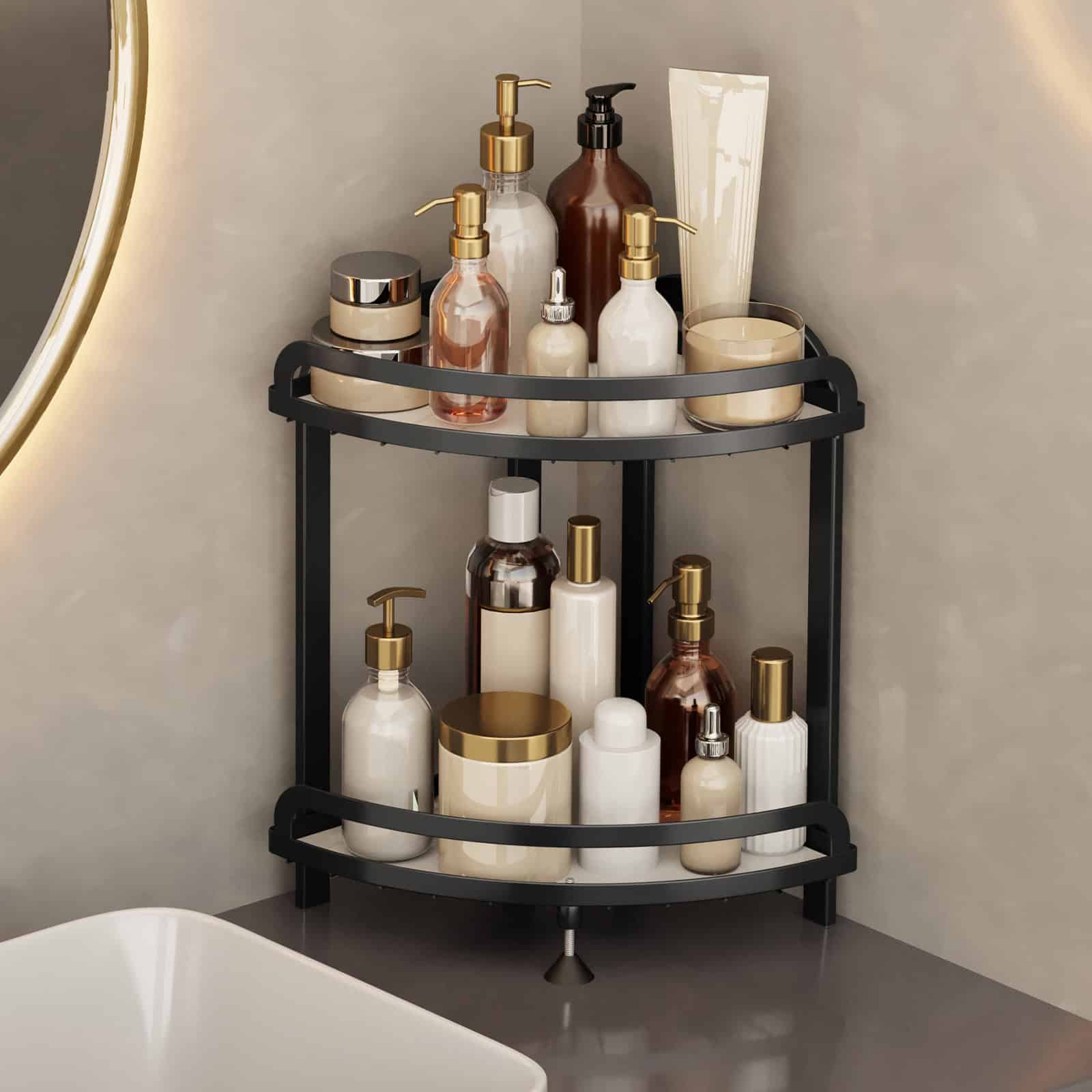 Turn any cluttered countertop into an elegant display. This 2-Tier Gold Corner Makeup Organizer combines function with fashion, making it an ideal addition to any bathroom, bedroom, or kitchen. Discover how easy it is to keep your essentials beautifully organized and easily accessible. Embrace elegance and order—add this organizer to your cart today and elevate your space instantly!
