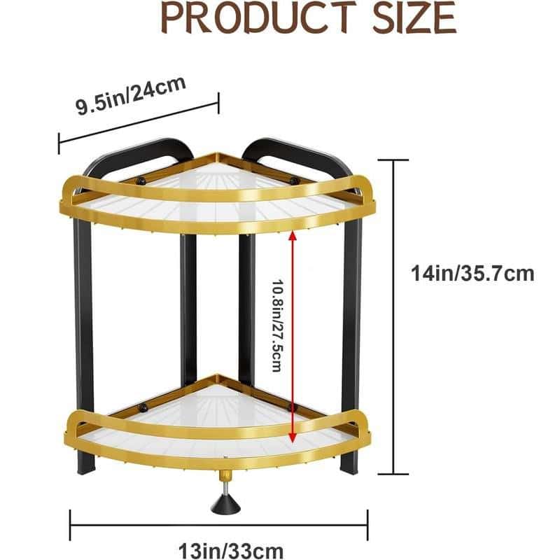 Revitalize your space with this 2-Tier Gold Corner Makeup Organizer! Designed to add a touch of elegance to any room, this organizer is perfect for bathrooms, vanities, and kitchens alike. Crafted from premium metal, it blends sophisticated style with lasting durability, enhancing your countertop or vanity setup with its gleaming golden finish. Its compact corner design maximizes your space while keeping your favorite items neatly arranged and within reach. With its sleek, modern look, this organizer transforms clutter into a beautifully organized display.