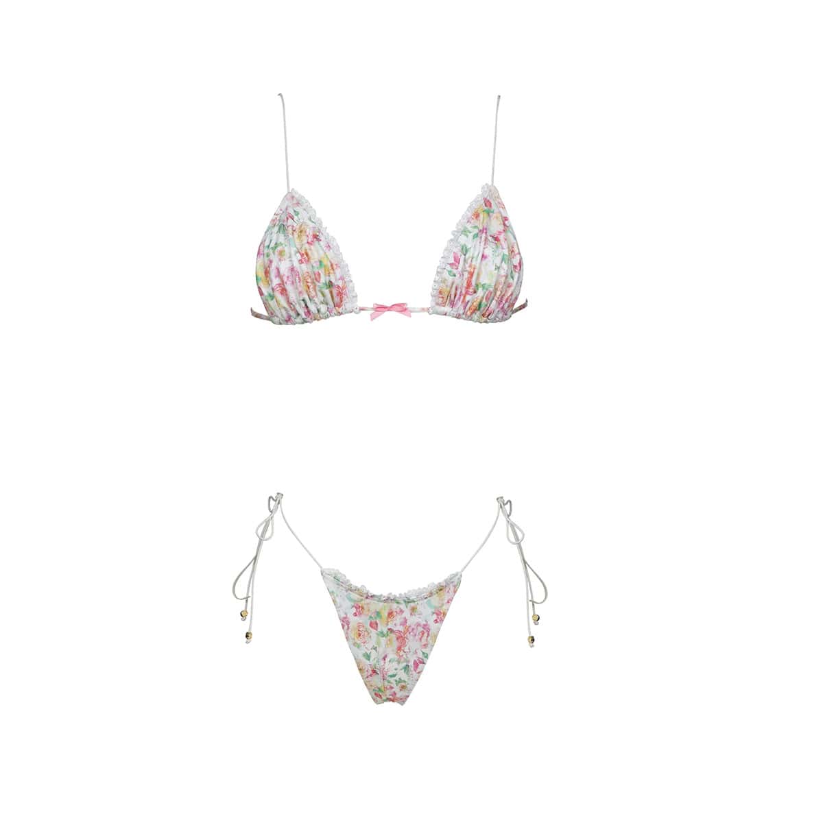 Our micro bikinis are made with a blend of polyester, nylon, and spandex, offering a stretchy fit that hugs your contours perfectly. The set includes a push-up bikini top and a thong bottom, both wire-free for maximum comfort. With a variety of prints available, each piece combines trendy design with functional wearability. Additional features include: