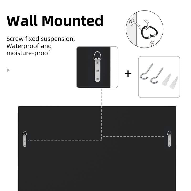 This wall-mounted mirror offers much more than a reflective surface; it serves as a piece of art that enhances the ambiance of your space. Made from top-quality 5mm silver glass and supported by a sturdy MDF wood frame, it provides a clear, distortion-free reflection. The mirror’s glass is waterproof, moisture-proof, and rust-proof, ensuring it maintains its pristine look and performance over time, even in high-humidity areas like bathrooms. The mirror comes with pre-installed D-rings on the frame, making hanging both quick and easy.