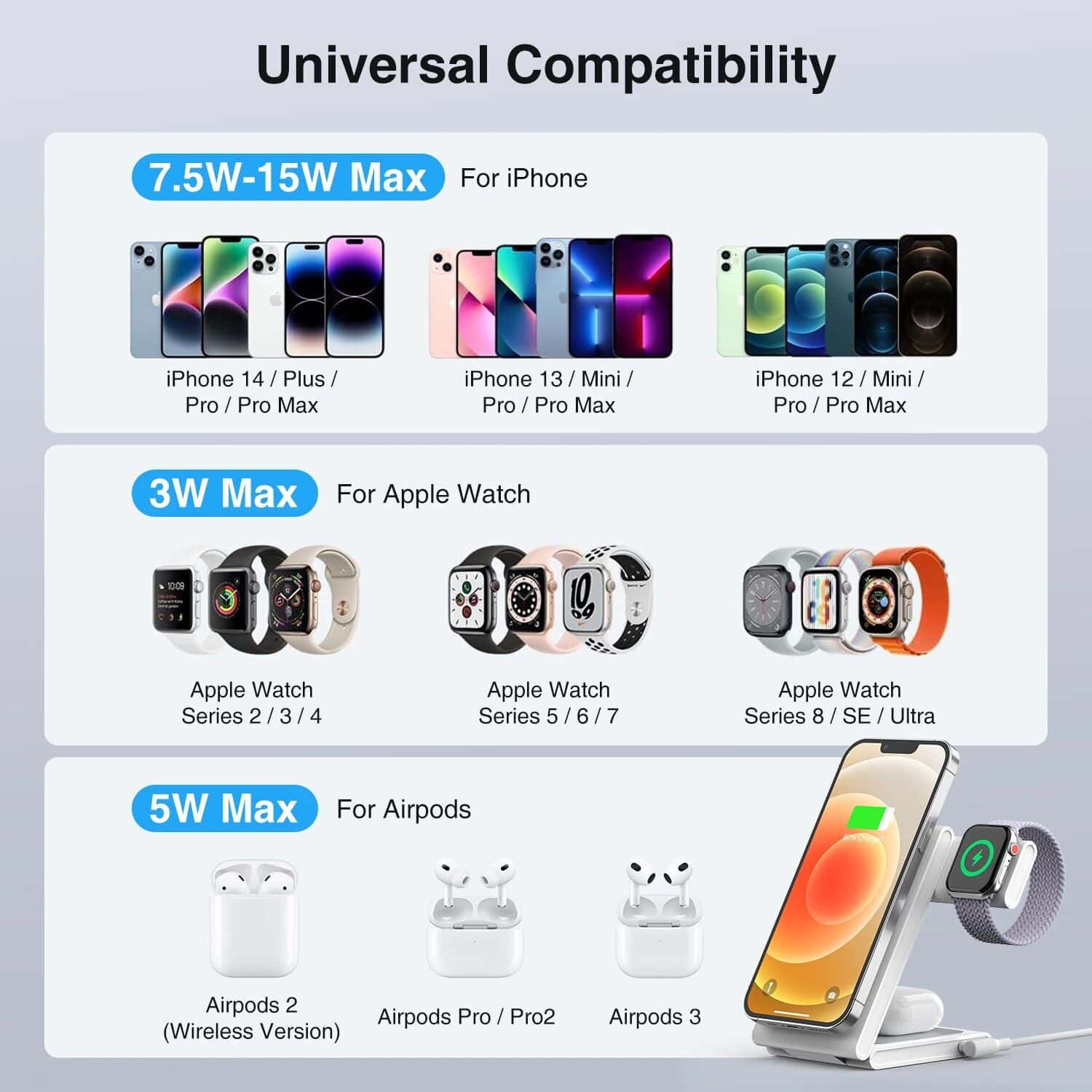Discover the epitome of convenience, style, and speed with our 3-in-1 Foldable Magnetic Wireless Charging Station. Seamlessly charge your iPhone 14/13 and Apple Watch S8/7 simultaneously while keeping your space clutter-free. Dive into a realm where technology meets elegance.