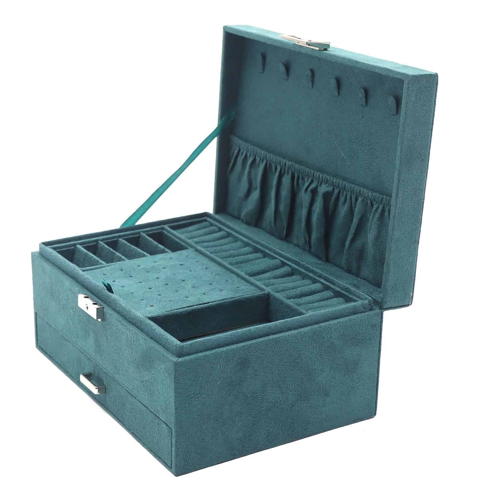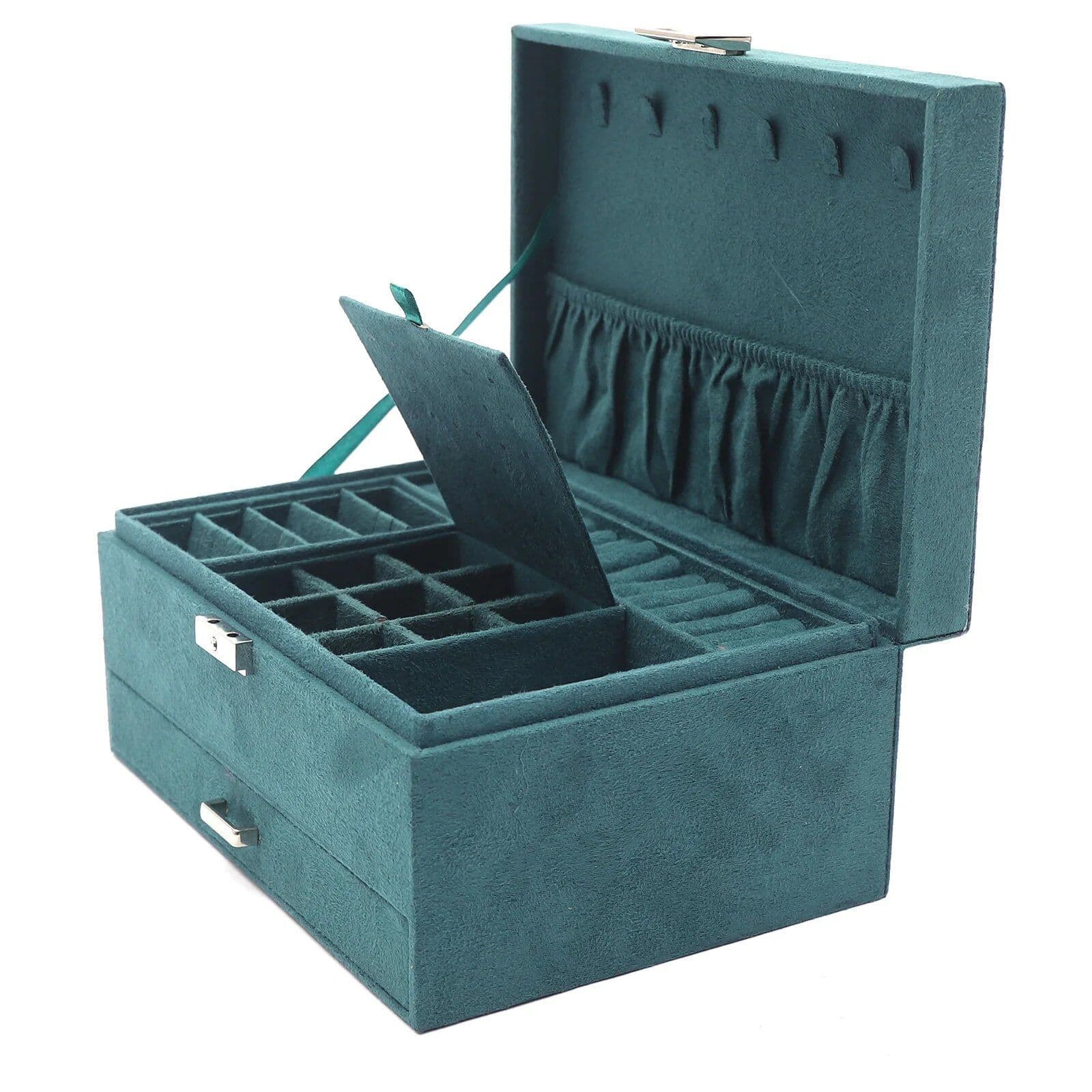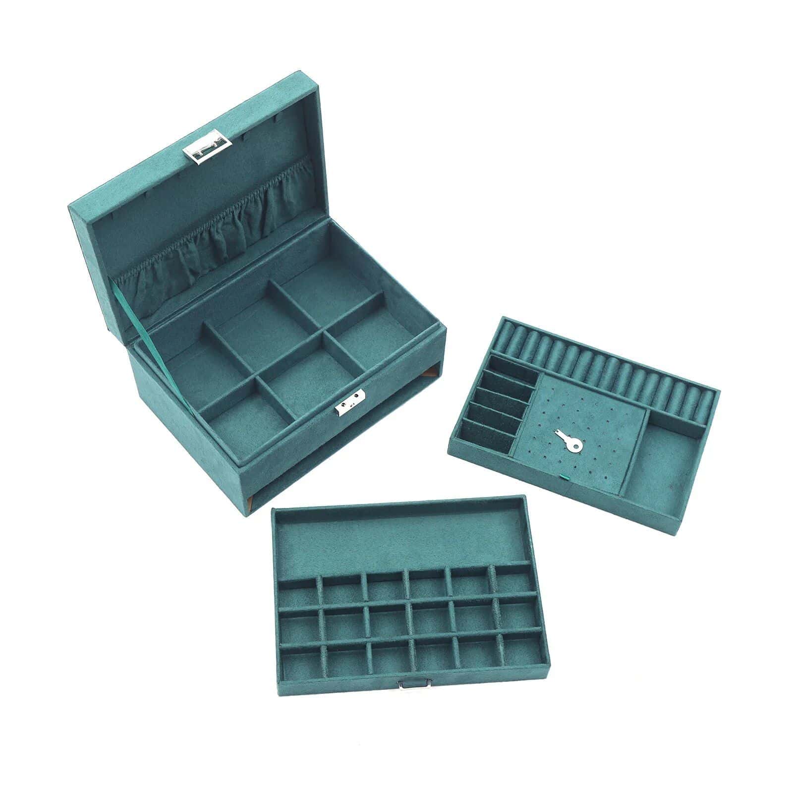Introducing our new 3 Layers Jewelry Box Organizer, a chic and spacious solution for your precious accessories. Embrace the elegance of the dark green flannel material that not only adds a touch of sophistication but also ensures your jewelry stays in pristine condition. Unleash the fashionista in you as you explore the unique features of this stunning jewelry box.