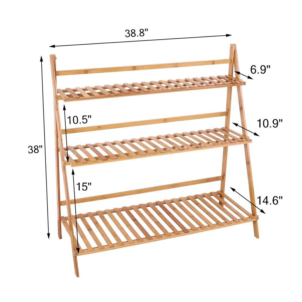 Imagine your favorite blooms and greens elegantly organized on this chic bamboo stand, transforming your space into a vibrant, living piece of art. Not only does it allow for a stunning display, but it also helps keep your plants organized and accessible for watering and care. The foldable design ensures that when not in use, or when space is at a premium, it can be easily stored away.