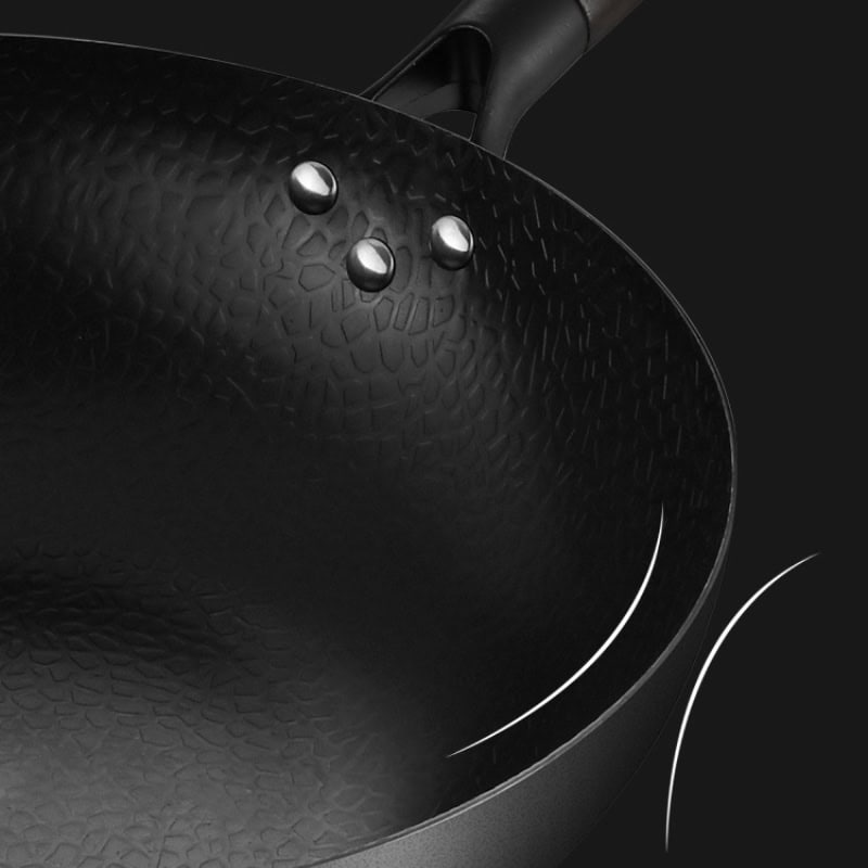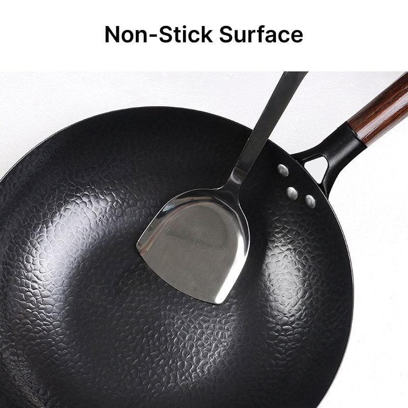 • Premium Carbon Steel Construction: The wok is made from durable carbon steel, combining the best of non-stick, stainless steel, and cast iron for reliable heat distribution and retention.