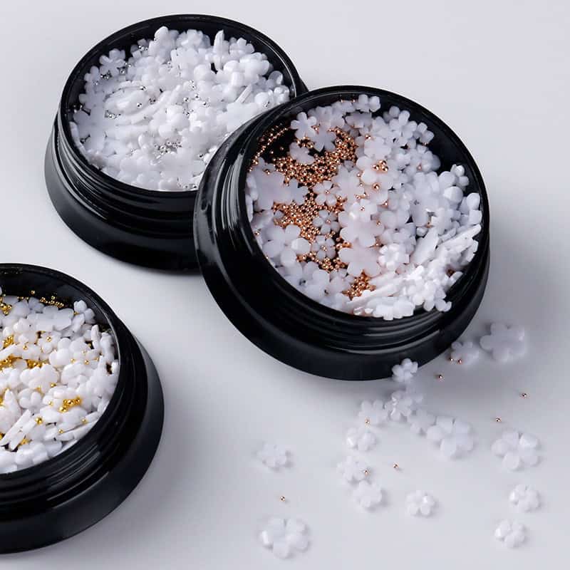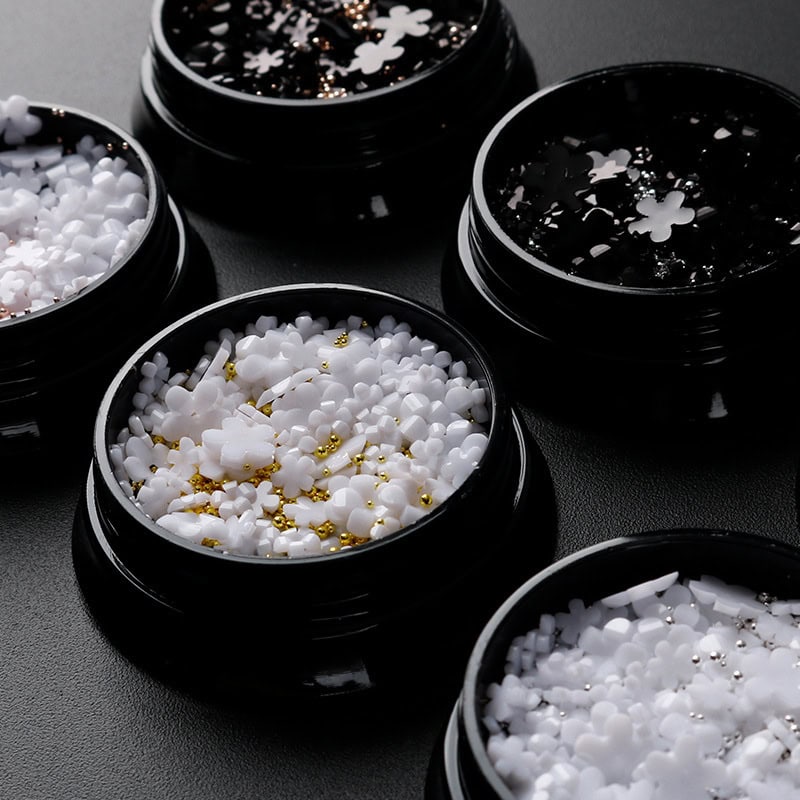 The vibrant mix of colors and the high-quality acrylic material ensures your nail designs stay chic and bold for days. These flower beads are not just beautiful, but also functional. Their non-abrasive design ensures they won’t damage your nails, making them safe to use on both natural and artificial nails. Plus, they are lightweight, so you won’t have to worry about them weighing down your nails.