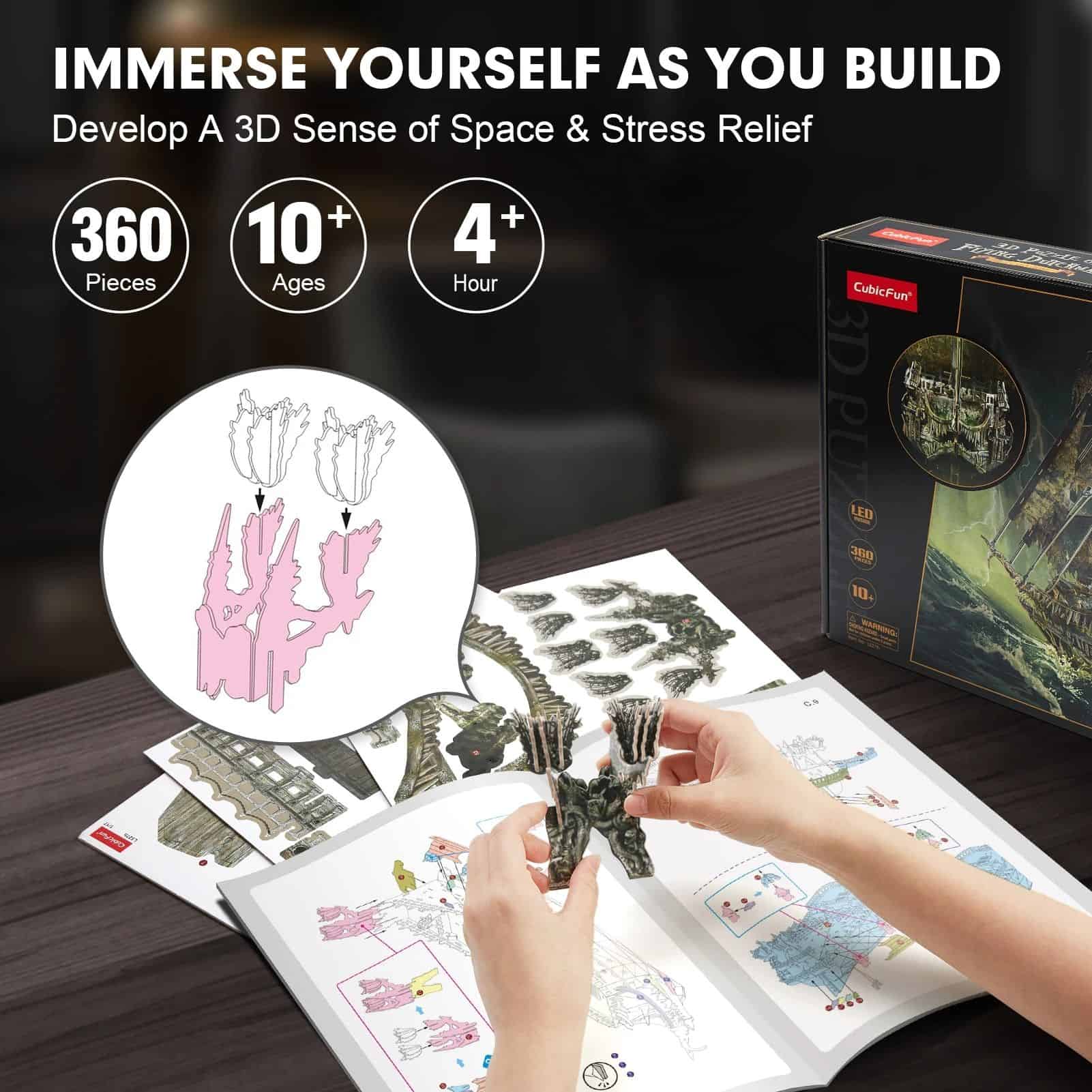 This 3D puzzle is perfect for a quiet evening at home, a challenging family game night, or as a unique gift for puzzle and history enthusiasts. It’s a splendid way to unwind, challenge oneself, and escape into the fascinating world of pirate legends and ghost ships.