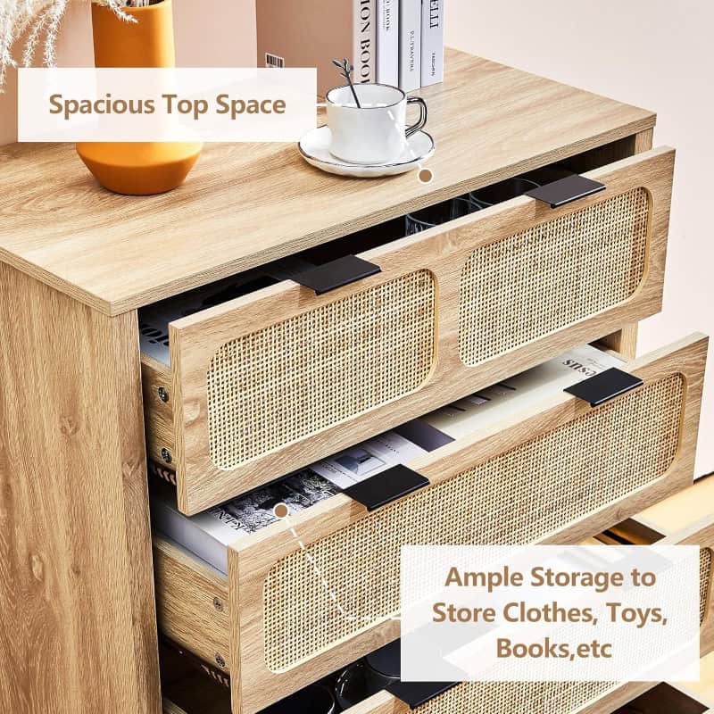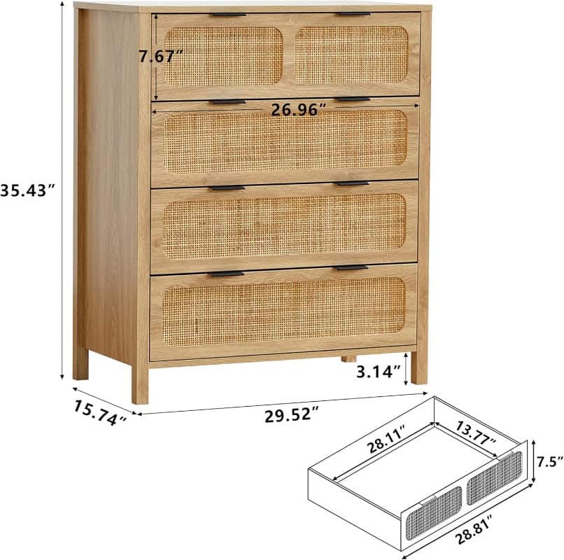 - Durable Wood Construction: Crafted from environmentally friendly MDF board and natural rattan, the dresser is sturdy, durable, and free of harmful chemicals or odors.