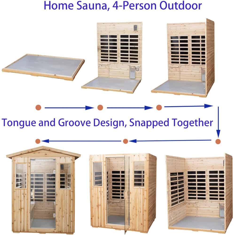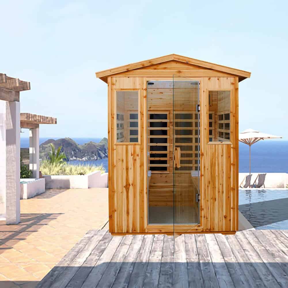 Transform your outdoor space into a sanctuary of health and relaxation with this luxurious 4-person far infrared sauna. Crafted from premium kiln-dried Hemlock wood, this sauna combines elegance with exceptional functionality, creating a spa-like experience in the comfort of your own home. Its thoughtful design and cutting-edge technology are perfect for rejuvenating after a long day or bonding with loved ones.