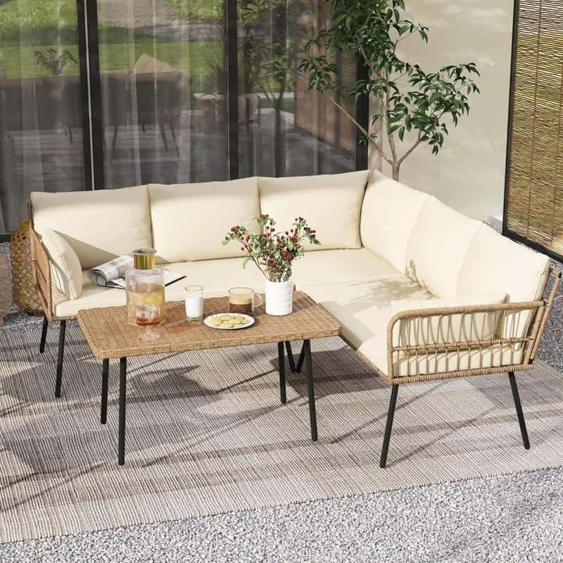 This patio furniture set stands out with its adaptable layout and luxurious comfort. The combination of modern design and premium materials ensures a chic look that complements any space, while the weather-resistant rattan guarantees lasting durability. Its versatility allows it to move seamlessly from outdoor patios to indoor lounges, making it the ultimate choice for stylish relaxation.