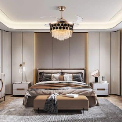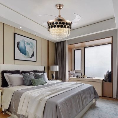 Introducing our stunning 42″ Crystal LED Ceiling Fan, an exquisite blend of elegance and functionality. This modern fandelier (fan-chandelier) is a statement piece for any living room, hall, or bedroom, combining the comfort of a fan with the luxury of a chandelier. With its LED lighting and retractable blades, it’s designed to impress and engineered to perform.