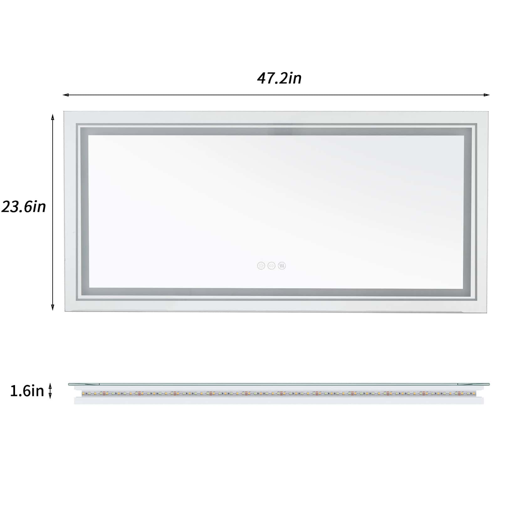 Elevate your bathroom experience with this stunning 47×24 inch LED Lighted Vanity Mirror. Combining sleek design and high-tech features, it’s the perfect blend of functionality and style for your daily routine. Whether you’re applying makeup, shaving, or just freshening up, this mirror offers exceptional clarity and customized lighting to ensure you always look your best. Featuring both front and backlighting, this mirror will brighten up your space and create a luxurious atmosphere with minimal effort.