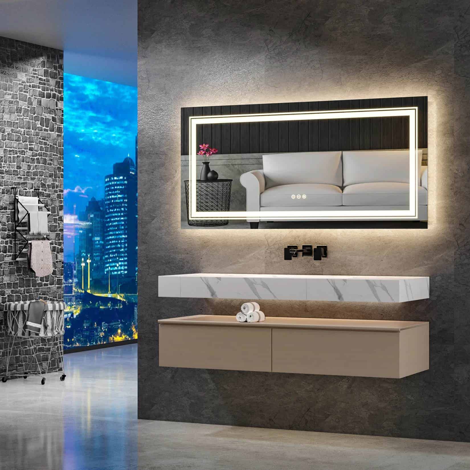 - Dual Lighting Sources – Enjoy the enhanced lighting with both backlit and front-lit LED strips, providing a luxurious ambiance while ensuring perfect visibility for your grooming routine.