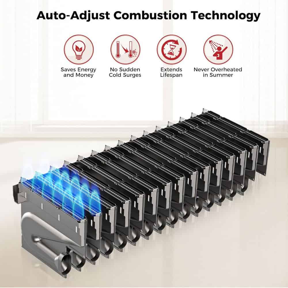 - Energy-Efficient Heating – With 132,000 BTU of output and three flame settings, this tankless water heater adjusts based on seasonal changes, preventing overheating in summer and saving energy during colder months.