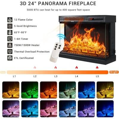 - Three-Sided Glass Panels: Enhances the visual appeal and allows a full view of the decorative fireplace.