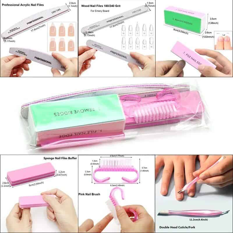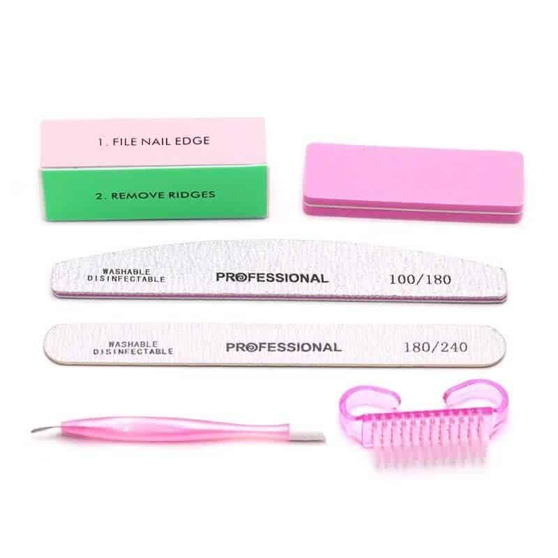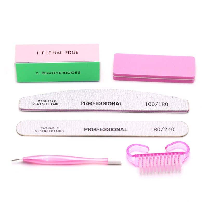 - Pink Nail Buffer Block: Ideal for buffing nail tips, size: 9.5×9.5×2.5cm.