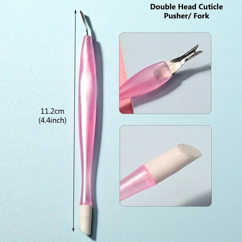 - Pink Cuticle Pusher and Dead Skin Fork: Gently care for cuticles, size: 11.2cm.