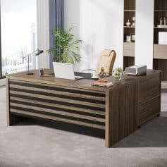 This L-shaped executive desk stands out for its thoughtful design and premium craftsmanship. Whether you’re managing business tasks or creating a home office sanctuary, this desk’s spacious surface, stylish aesthetic, and smart storage make it the perfect centerpiece for your workspace.