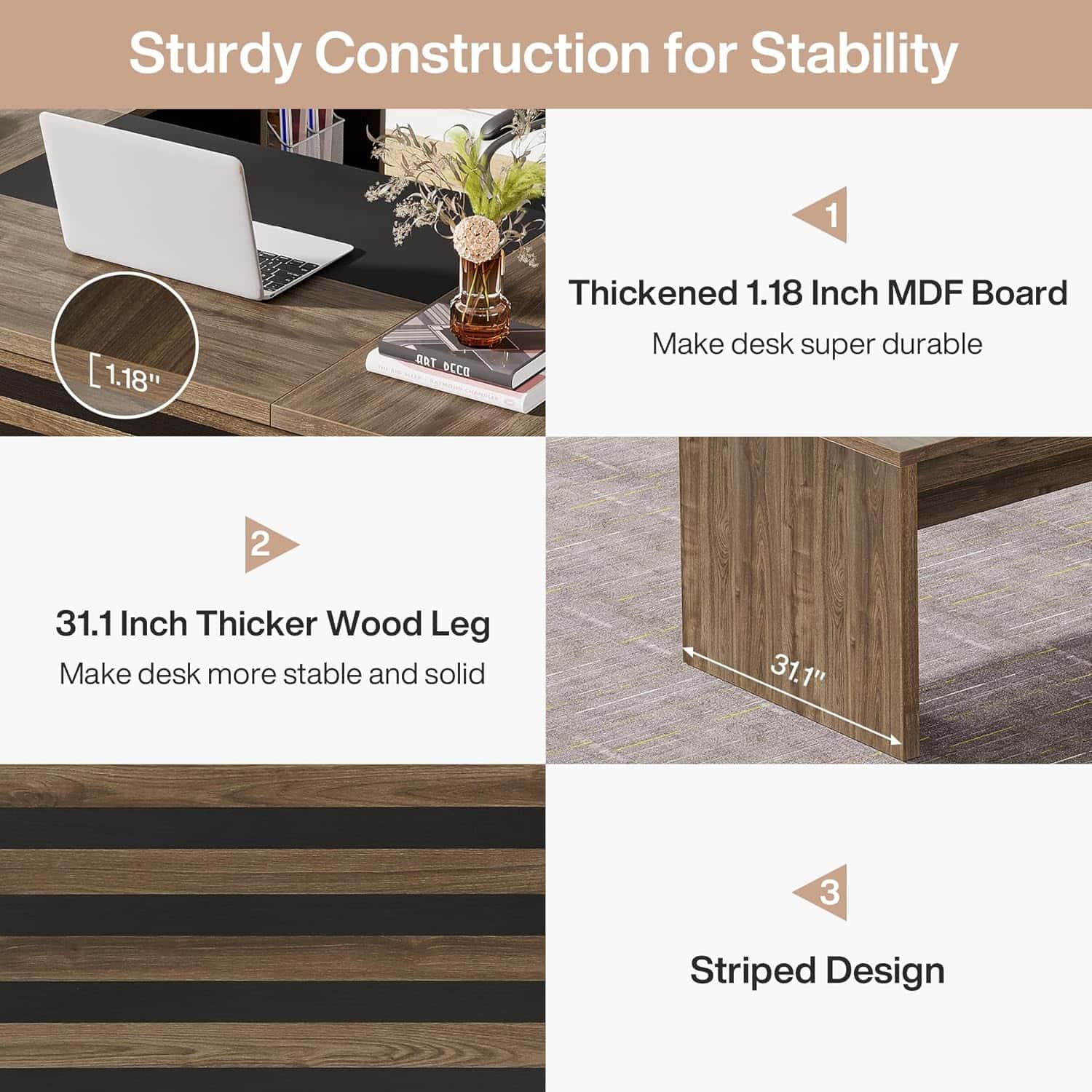 - Spacious Desktop: The 62.2″ wide and 31.3″ deep desktop provides ample room for dual monitors, printers, and workspace essentials, making multitasking a breeze.