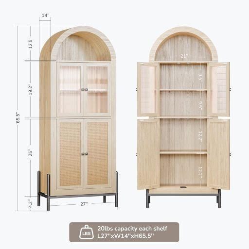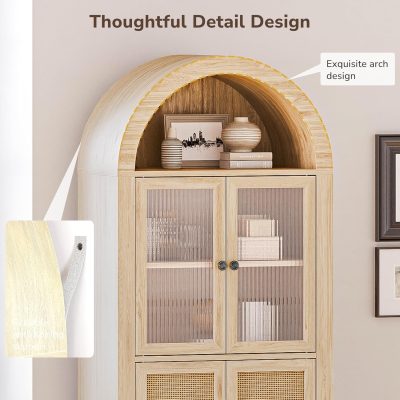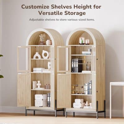 Transform your living space with this 65-inch freestanding storage cabinet, a perfect blend of style and practicality. With its sophisticated arched design and a White Lotus finish, this cabinet exudes elegance and complements any interior décor. The reeded glass door adds a touch of refinement, making it an ideal centerpiece for your living room, kitchen, or bathroom. Whether you’re showcasing your favorite books, displaying cherished glassware, or organizing kitchen essentials, this cabinet seamlessly adapts to your needs.