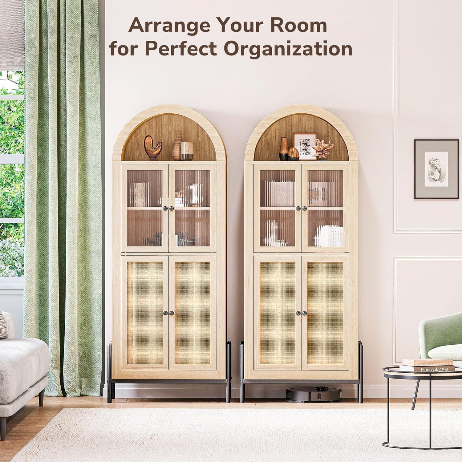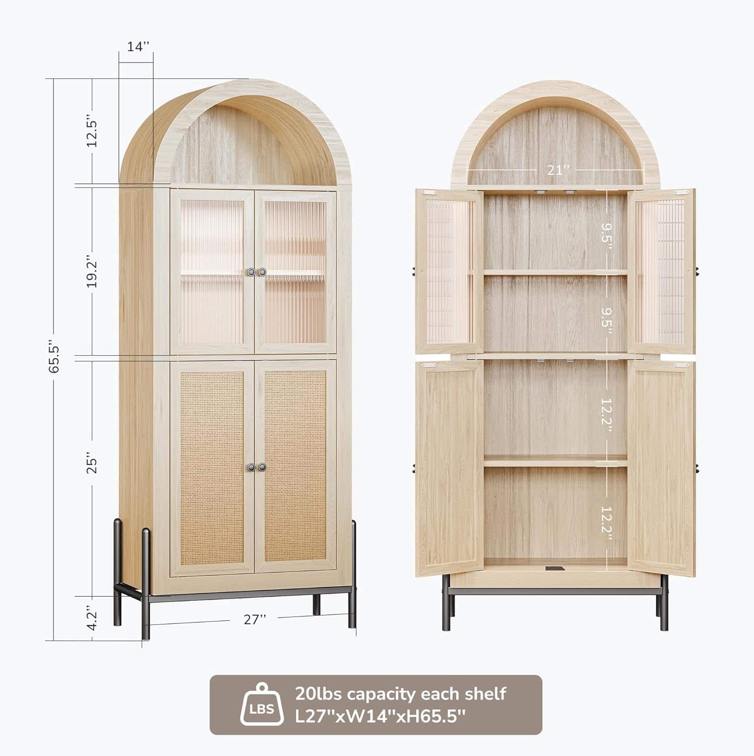 - Elegant Design: The arched top and naturalistic reeded glass door bring timeless beauty to your space.