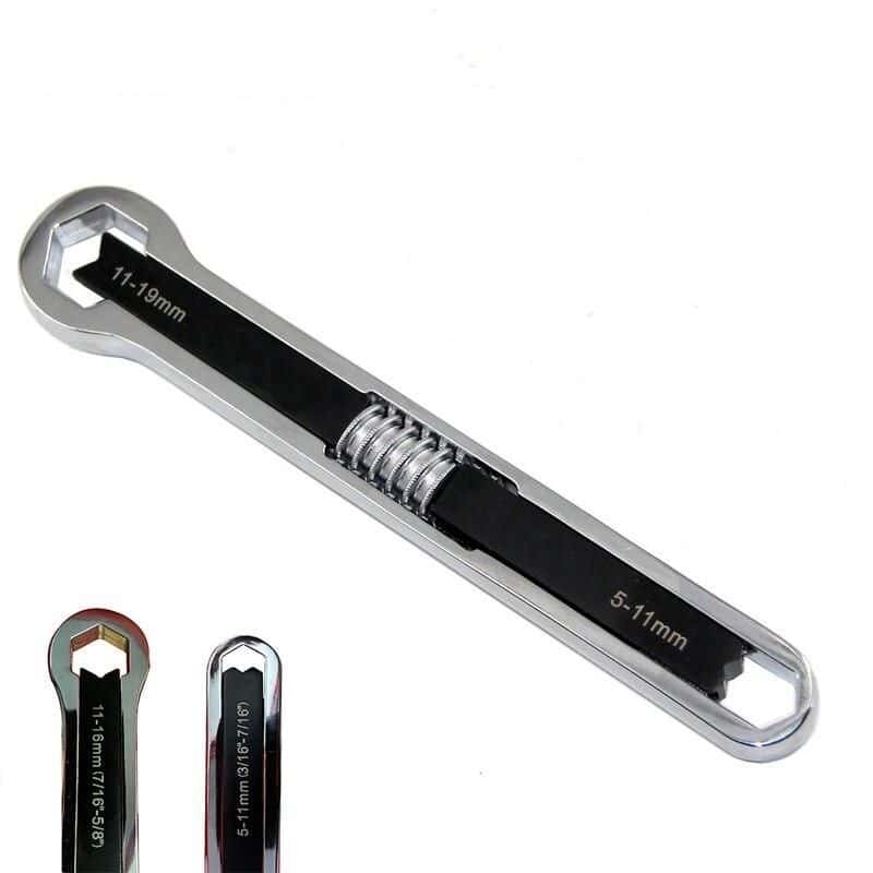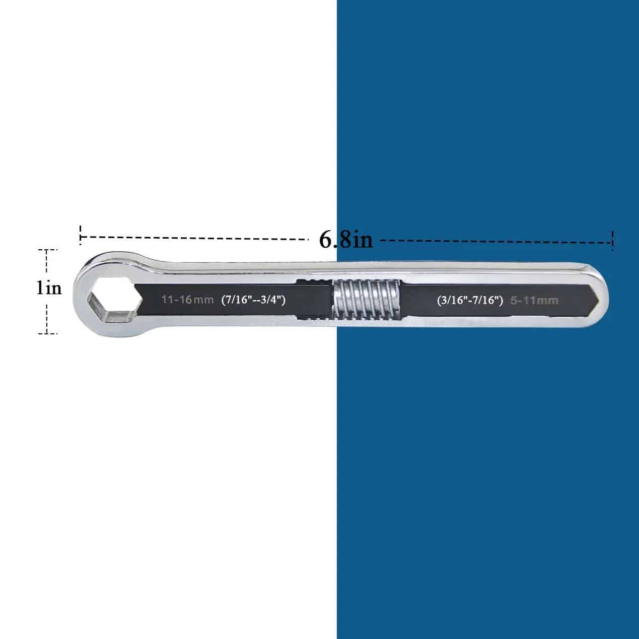 Our innovative wrench boasts a double-end design, featuring a 5-11mm small head and an 11-16mm big head, making it suitable for various screw sizes. The overall heat treatment ensures a hardness level of HRC40~52, providing you with a tool that’s not only tough but also reliable. Its mirror-polished finish, complemented by electroplating and a blackened middle push block, adds a touch of elegance to its robust construction.