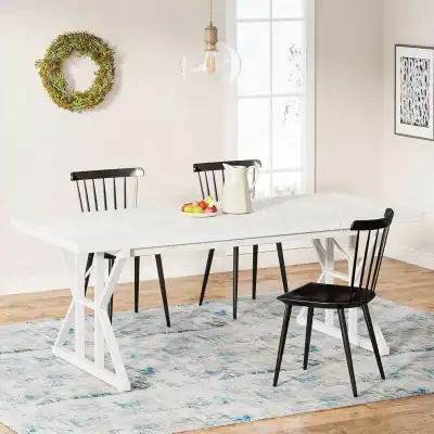 - Farmhouse-Inspired Design: A perfect blend of rustic charm and modern elegance, featuring a vintage brown tabletop and a white trestle base with x-shaped side accents.