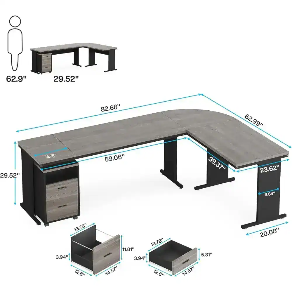 Upgrade your office setup with this spacious 83-inch L-shaped executive desk. Designed for professionals, this desk combines an expansive work surface with smart storage solutions, including a 3-drawer file cabinet. The stylish and functional design makes it an ideal centerpiece for any home office or corporate environment, providing both efficiency and elegance.