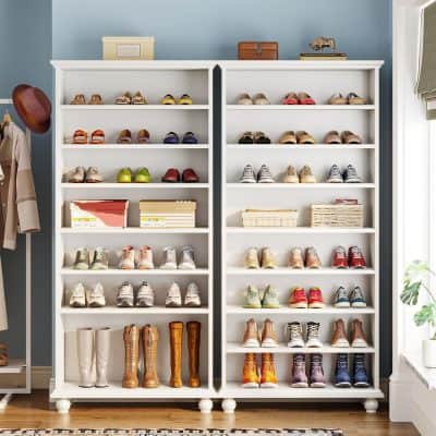- Adjustable Shelves: Except for the fixed middle panel, shelves can be customized to fit shoes of various sizes, from boots to pumps.
