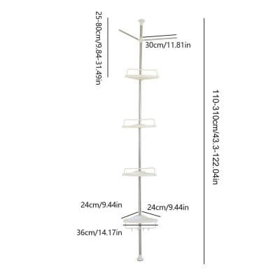 Discover the ultimate solution to your bathroom clutter with our Adjustable 4-Tier Corner Shower Caddy. Designed to cater to all your shower storage needs, this innovative organizer boasts a rust-proof tension pole, ensuring longevity and durability. Its sleek white design and adjustable height feature, ranging from 1.1 to 3.1 meters, make it a versatile addition to any bathroom, maximizing corner space efficiently.