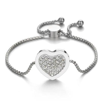This bracelet is more than a piece of jewelry; it’s a declaration of love and a testament to the wearer’s refined taste. Its elegant heart design, complemented by the luster of stainless steel and the brilliance of CZ stones, makes it a remarkable accessory that carries a wealth of meaning. The adjustable design not only ensures a comfortable fit but also makes it a versatile choice for any occasion.