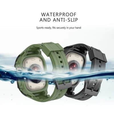 Our kit is not just another accessory; it’s an essential upgrade for your Apple Watch Ultra. Crafted from high-quality rubber silicone, the band offers a snug, comfortable fit that’s ideal for prolonged wear. The accompanying PC case safeguards your watch against scratches, bumps, and the elements, ensuring it stays in pristine condition no matter where your adventures take you.
