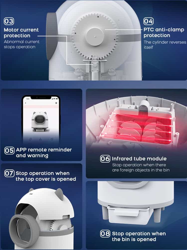 - Smart APP Control: Manage the litter box remotely, customize cleaning schedules, and monitor your cat’s health data with ease.