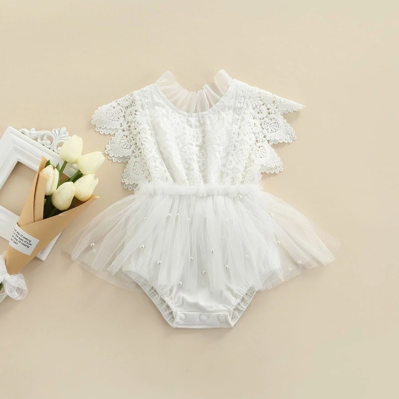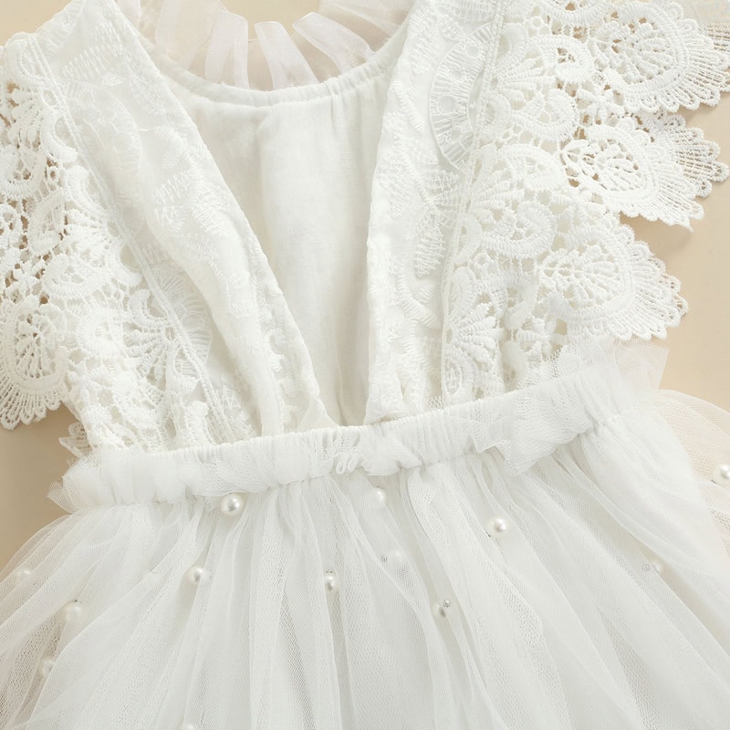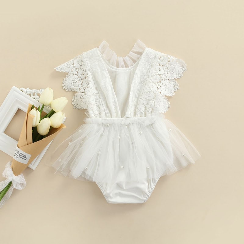 Dress your little one in this Baby Girl Romper, designed to combine elegance and comfort for everyday wear. Featuring hollow-out lace details, charming fly sleeves, and intricate beading, this romper is the perfect outfit for summer outings or casual family gatherings. Crafted from soft cotton blend fabric, it ensures your baby girl stays comfortable and stylish all day long.
