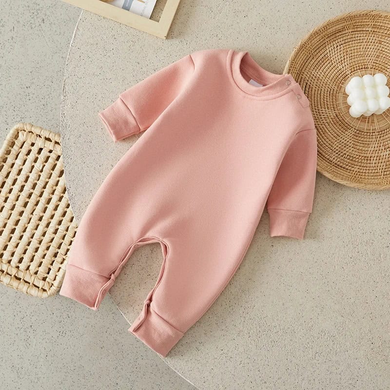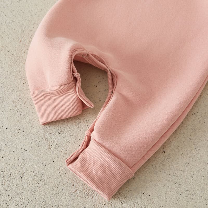 The combination of functionality and style makes this romper stand out. Its soft fleece material ensures warmth and comfort, while the solid color and clean design provide a chic yet simple look. Suitable for both boys and girls, this jumpsuit makes dressing your little one quick and stress-free.