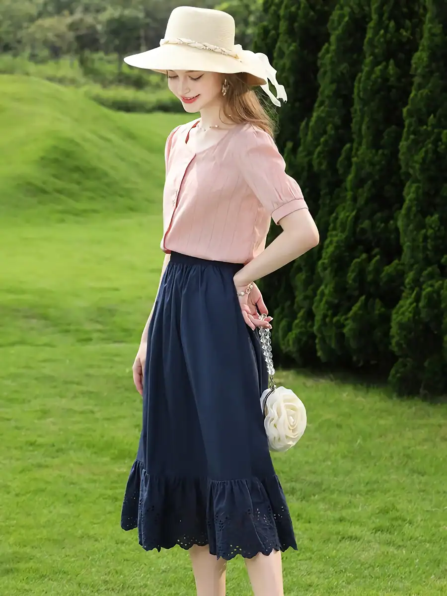 Discover Effortless Elegance with Our Blue High Waist Summer Skirt