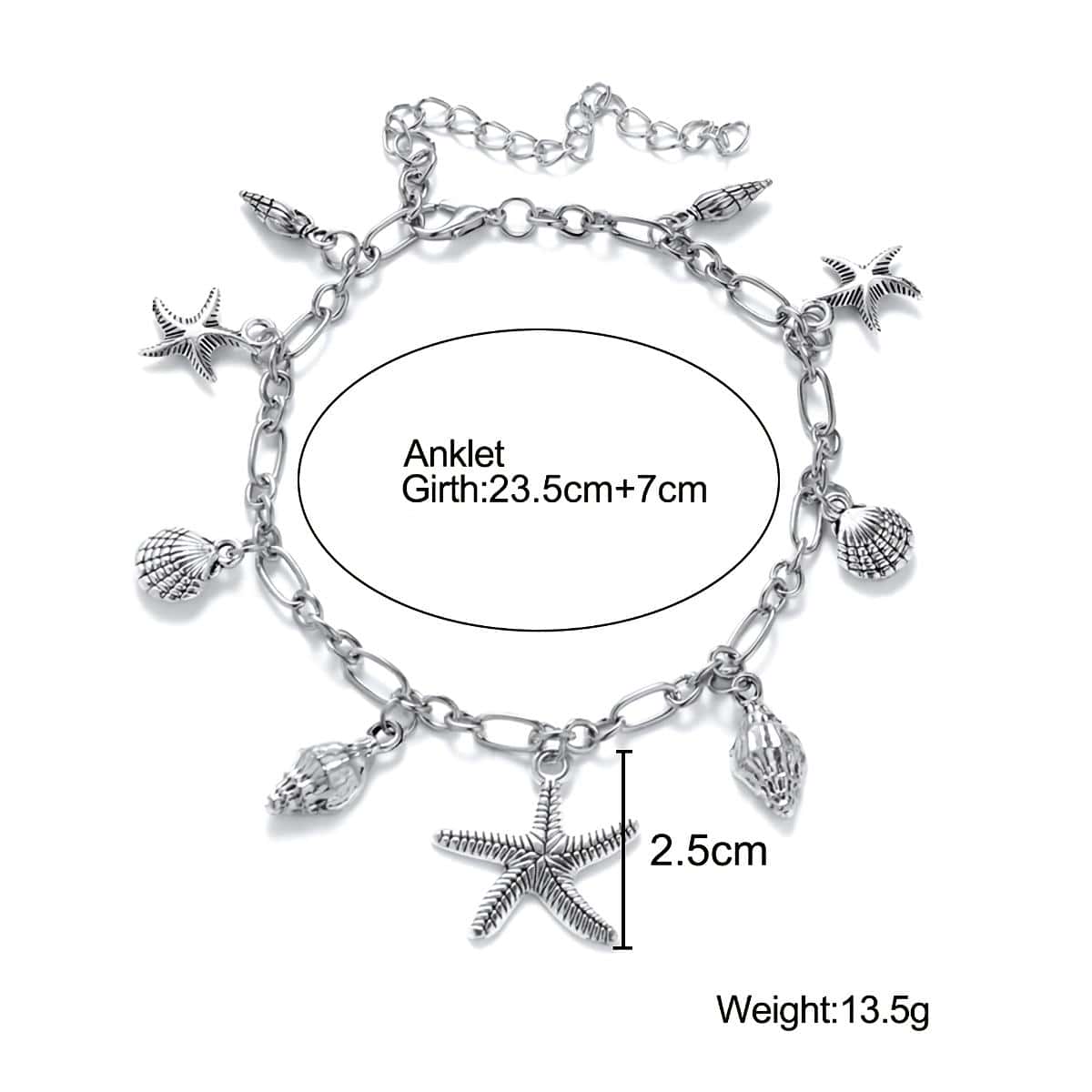 This exquisite anklet is crafted from high-quality zinc alloy, ensuring durability while remaining lightweight on your ankle. The charming starfish pendant dangles gracefully, catching the light and adding a playful touch to your movement. With a length of 23.5cm and an additional 7cm extension chain, it offers a customizable fit for all sizes, securing with a reliable clasp to keep it in place as you enjoy your day.
