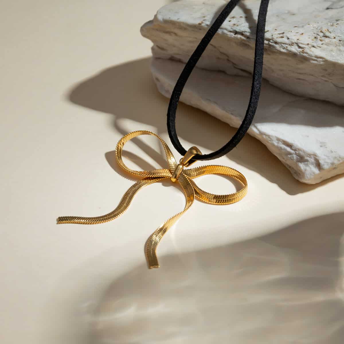 Introducing Our Stunning 18K Gold Plated Bowknot Snake Bone Chain Necklace