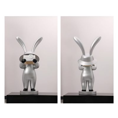 Handcrafted with slight imperfections, the statue exudes unique charm, ensuring that no two pieces are identical. Its durable resin construction guarantees longevity, while the modern silver finish adds sophistication and elegance. Whether placed in a living room corner, beside a sofa, or in an office, the Camera Rabbit instantly elevates the ambiance.
