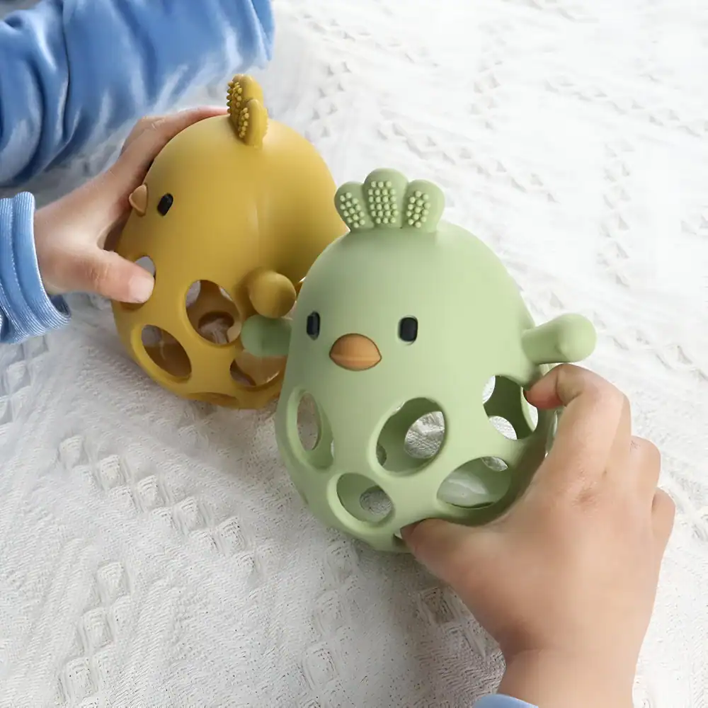 This Cartoon Chick Baby Teether Glove is a game-changer in the world of teething toys. Its unique glove design allows your baby to wear the teether securely on their hand, keeping it close and easily accessible for those precious chewing moments. The soft silicone is kind on your baby’s gums, providing the relief they need without the risk of hard or sharp edges. Its fun chick shape will captivate your baby’s senses, making teething less of a struggle and more of a fun, playful experience.