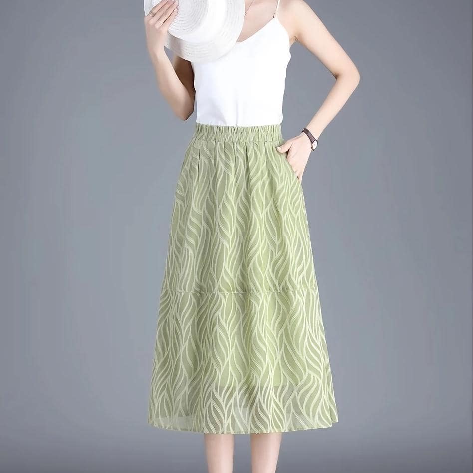 Embrace the effortless charm of our Elegant Mid-Calf Chiffon Skirt. Designed for the modern woman who adores a blend of casual elegance and comfort, this skirt is your perfect companion for both busy weekdays and relaxing weekends. Its flowing chiffon fabric, accented with subtle stripes, offers a touch of sophistication that elevates your everyday look.