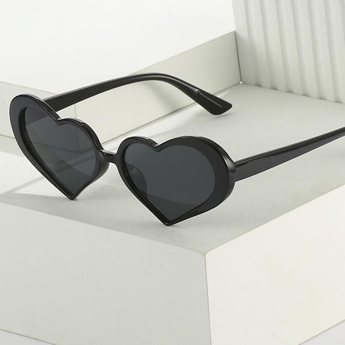 Heart-shaped black sunglasses with dark lenses, perfect for chic summer looks and UV protection, available at Monalisa Store for fashionable eyewear.