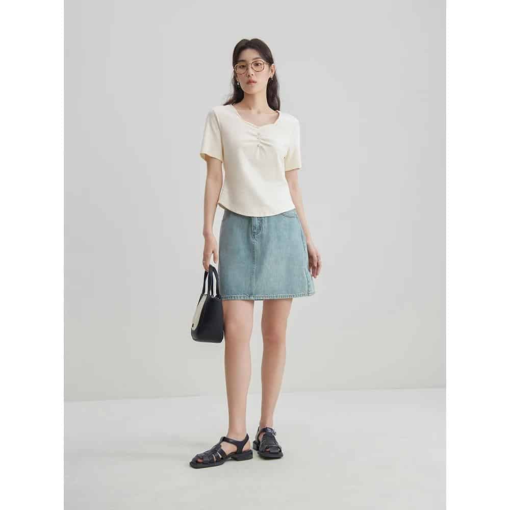 This skirt is more than just a wardrobe staple; it’s a statement piece that exudes confidence and sophistication. Its high waistline elongates the legs, while the A-line silhouette flatters your curves, creating a timeless silhouette that never goes out of style.
